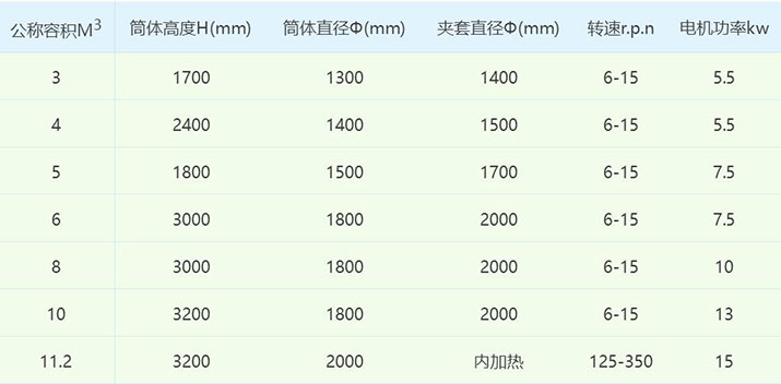 攪拌目前多采用錨式攪拌器,轉(zhuǎn)速6-15轉(zhuǎn)/分,攪拌的按裝目前采用下軸安裝,可縮短軸長度,便于安裝維修。 真空濃縮結(jié)晶鍋主要技術(shù)參數(shù)表(供參考)